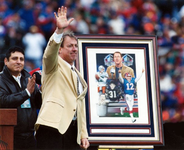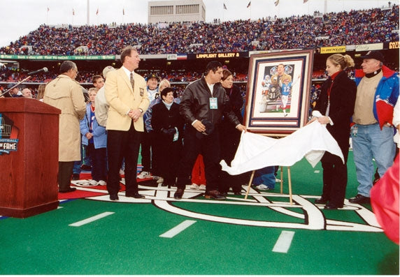 Ray Simon unveiling his piece honoring quarterback and former Super Bowl champion Jim Kelly.