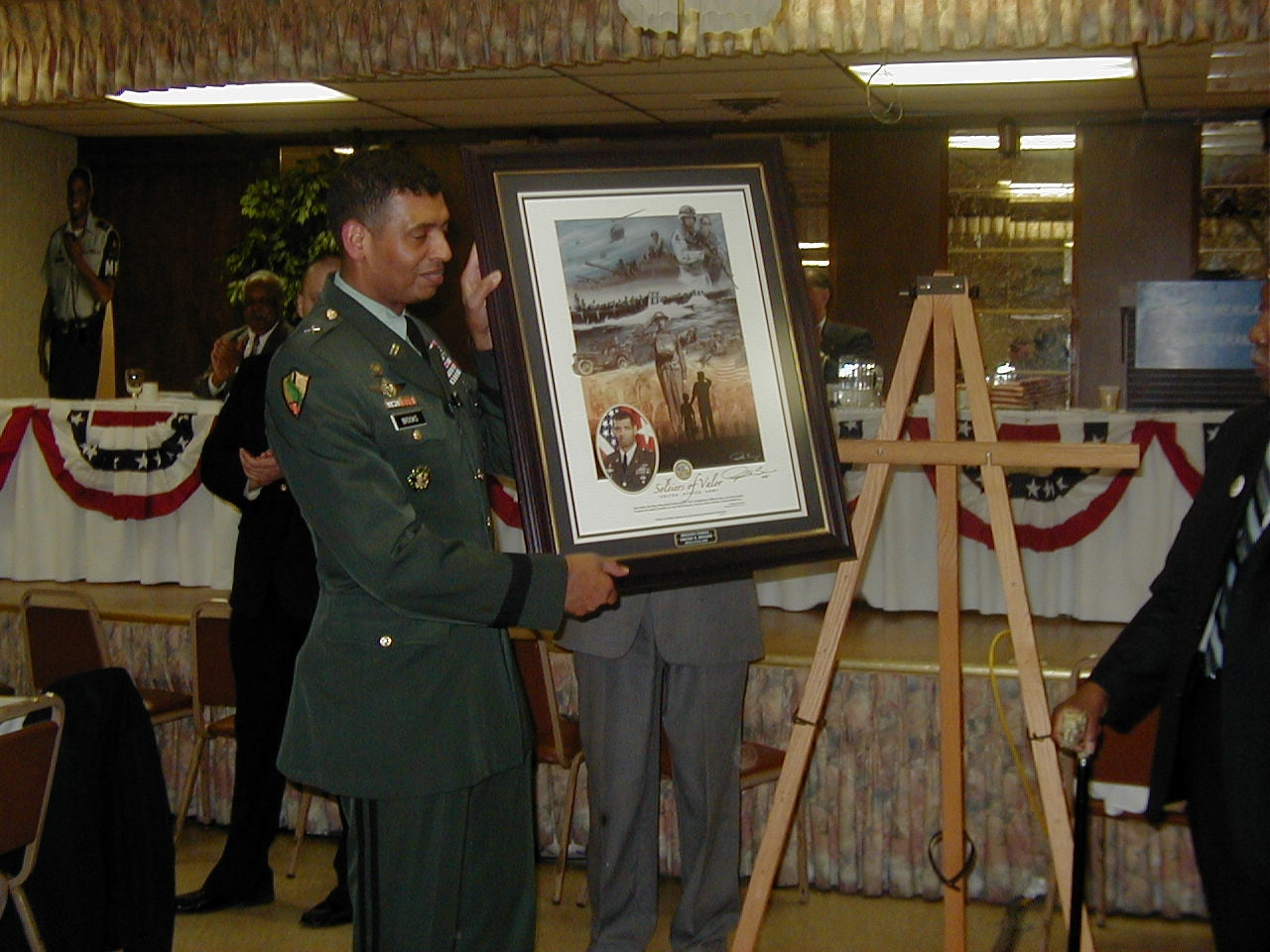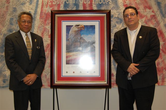 Retired Army general Vincent Brooks receiving his personalized print from Ray Simon. The print was gifted to honor General Brooks's time serving this great country.