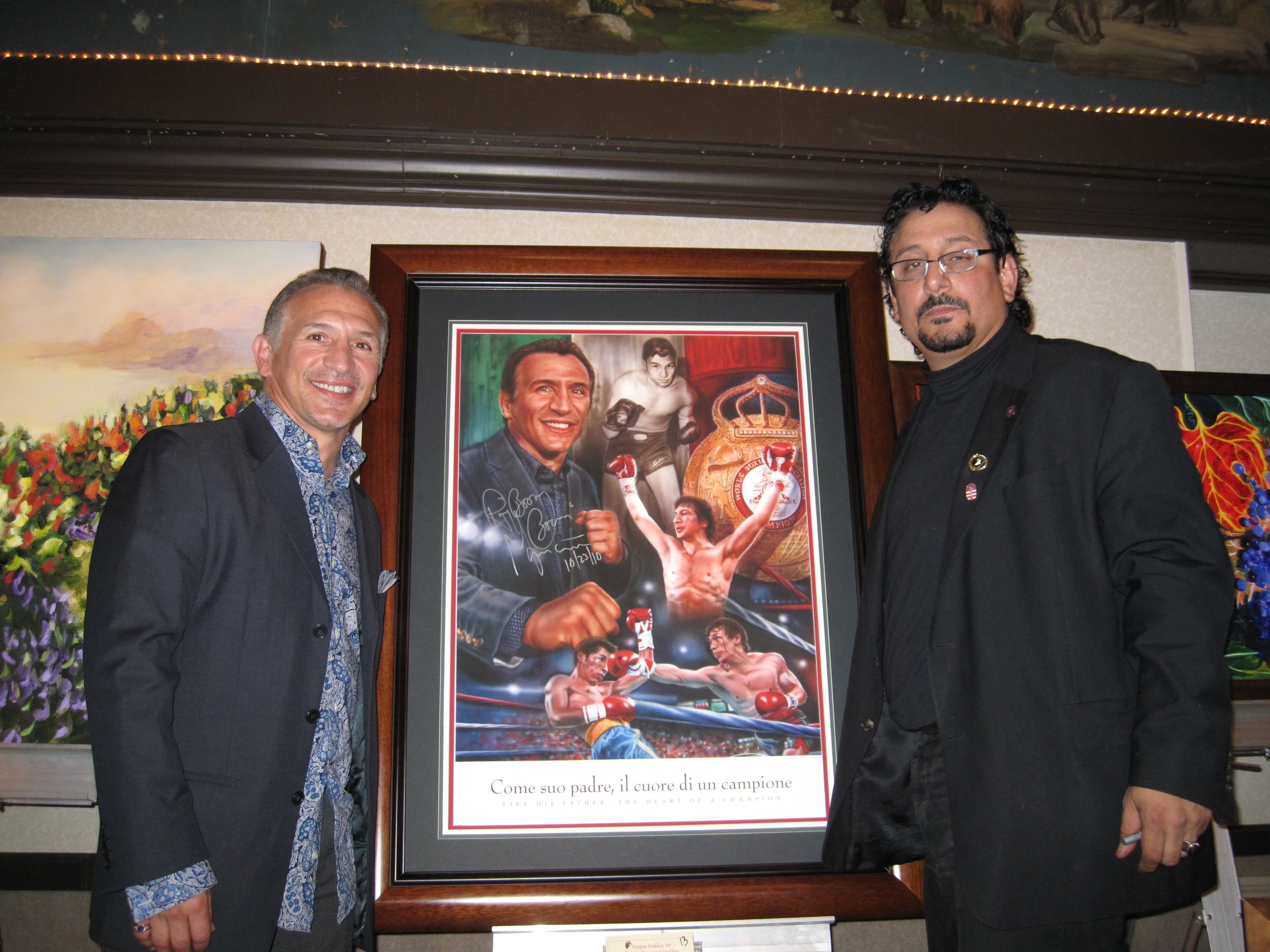 Ray Simon presents his tribute painting to boxer Ray "Boom Boom" Mancini, a local legend.
