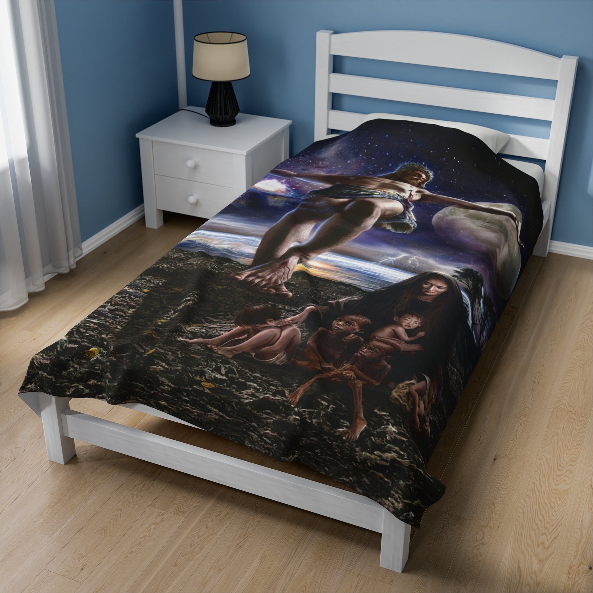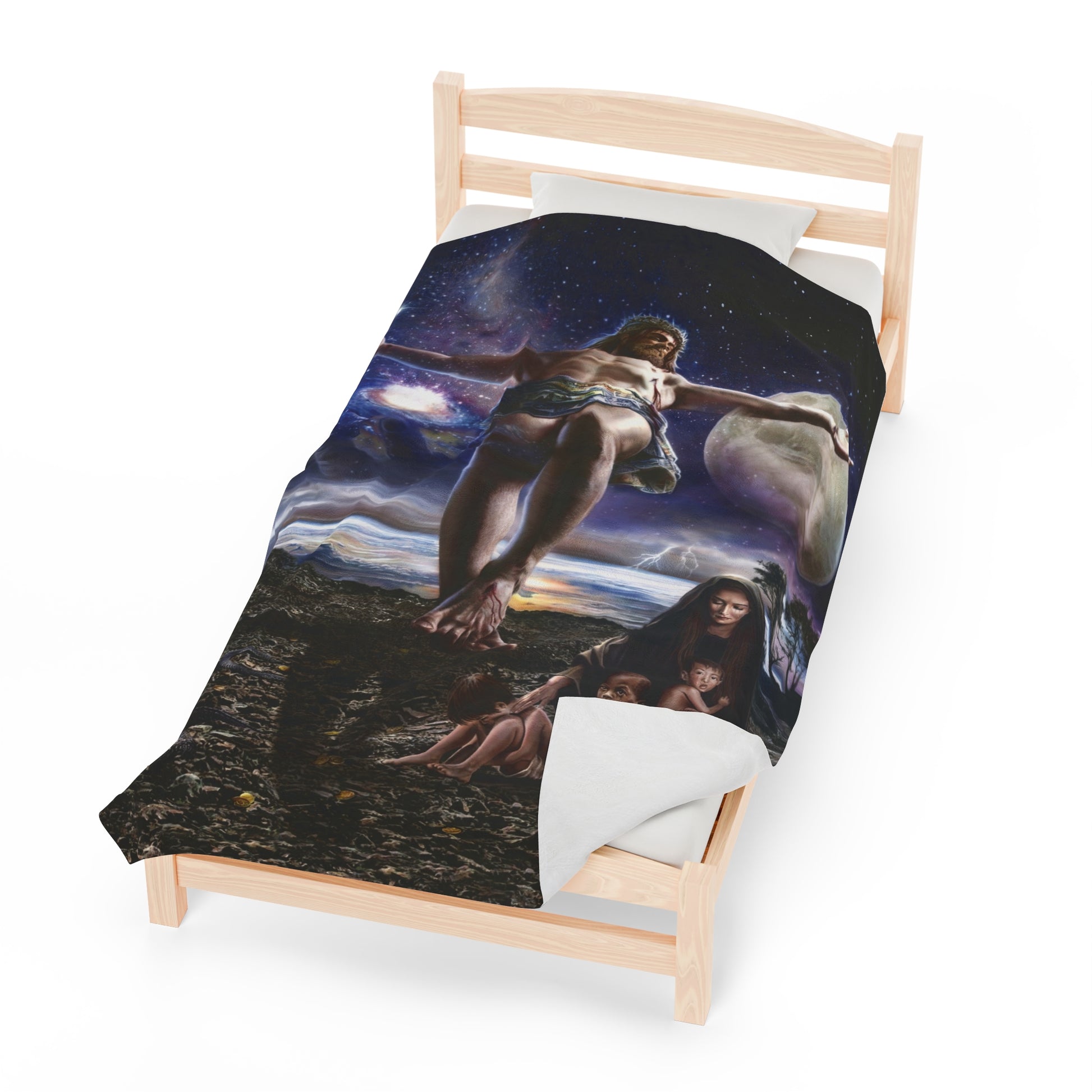 "Crucifixion" Velveteen Plush Blanket - A Tapestry of Cosmic Spirituality