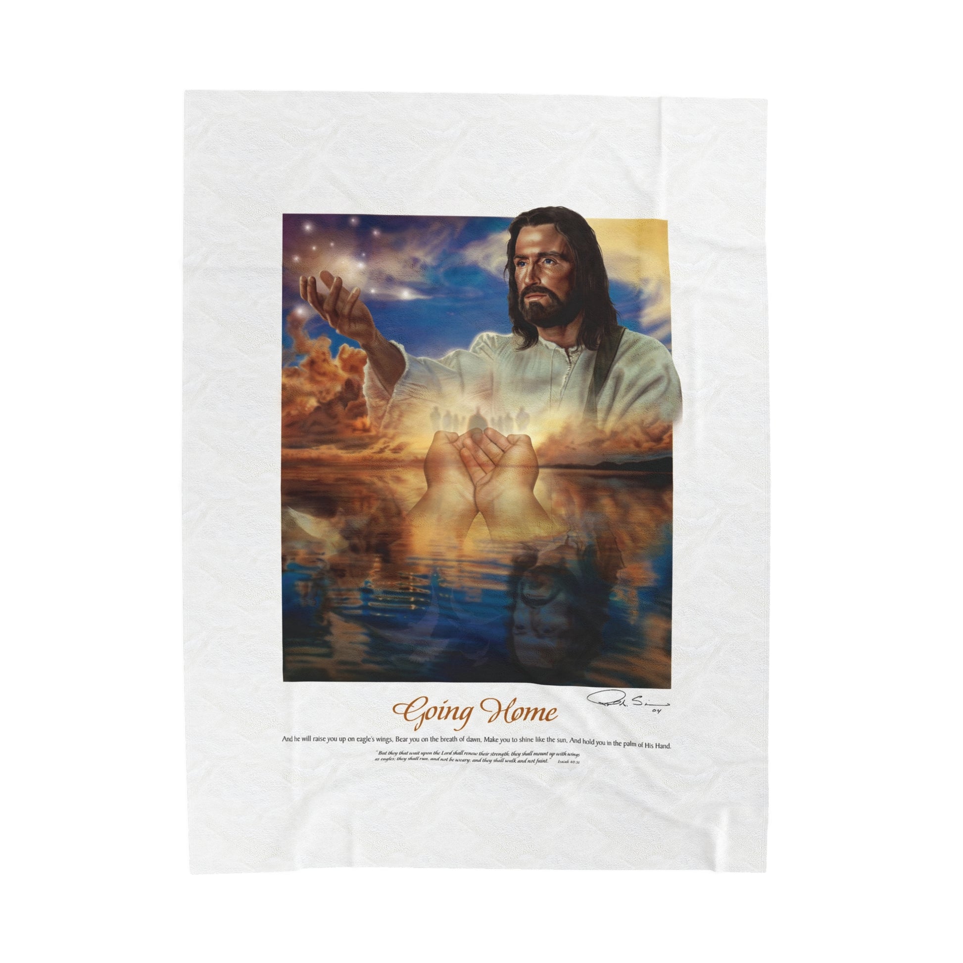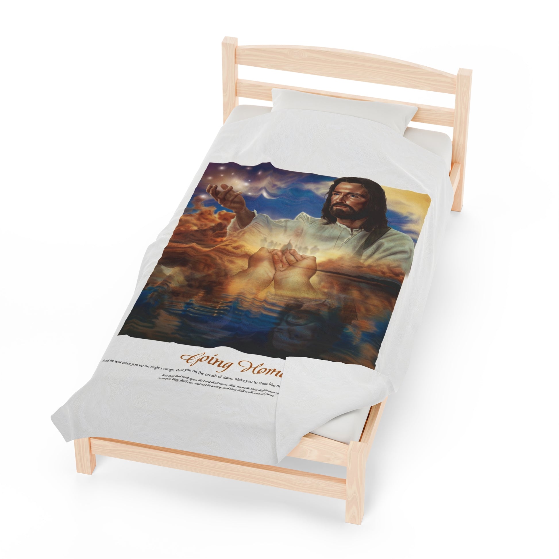 Choose the "Going Home" blanket to experience a poignant connection with the eternal journey and the embrace of divine love. It's a meaningful addition to any home, offering both warmth and a profound spiritual connection.