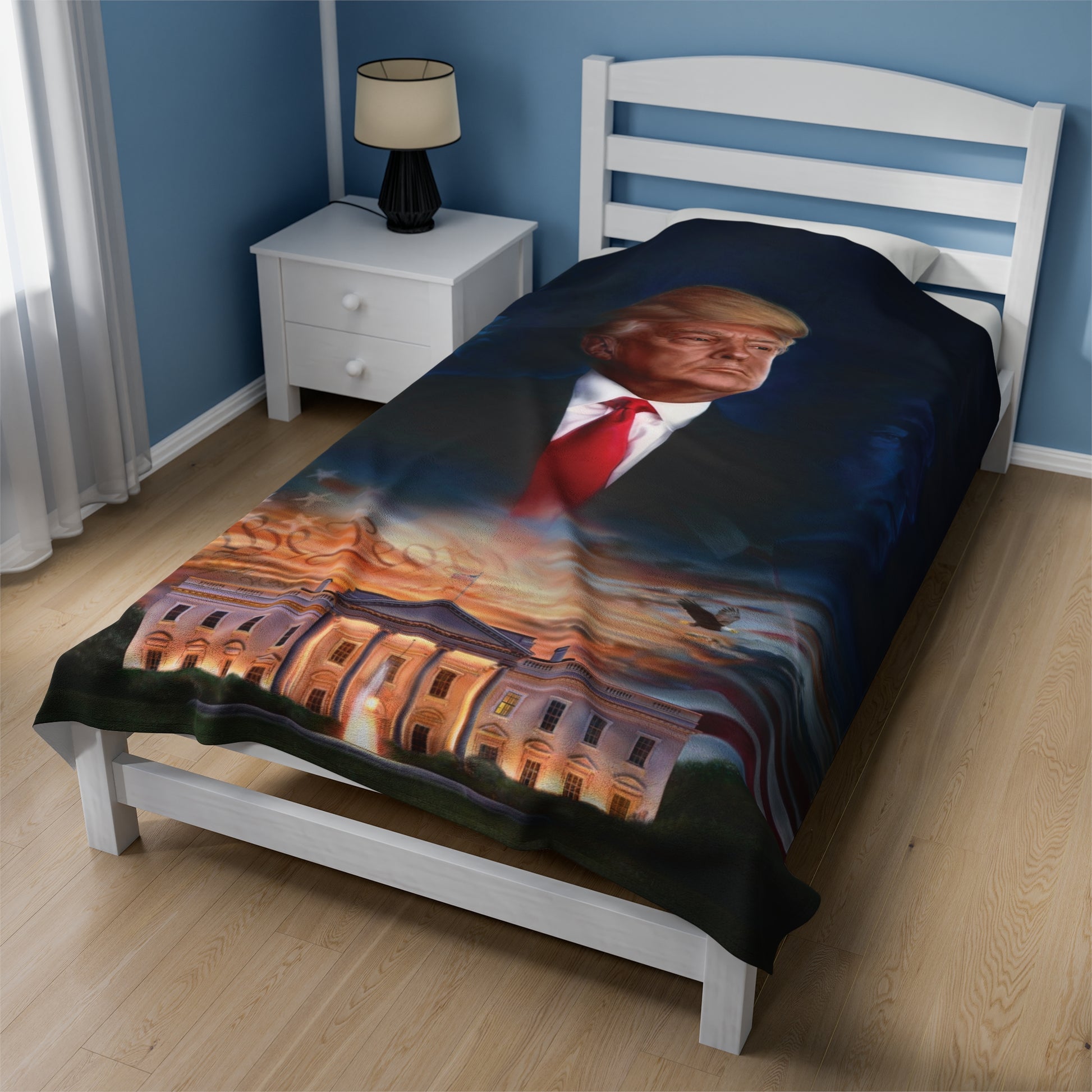 Wrap yourself in the spirit of renewal and optimism with our "The Awakening" Velveteen Plush Blanket. This luxurious blanket transcends mere comfort, serving as a profound tribute to a transformative moment in America's journey. Inspired by the captivating masterpiece "The Awakening" by Artist Ray Simon, this artwork captures the essence of anticipation for a promising future, symbolized through the visionary figure of Donald Trump.