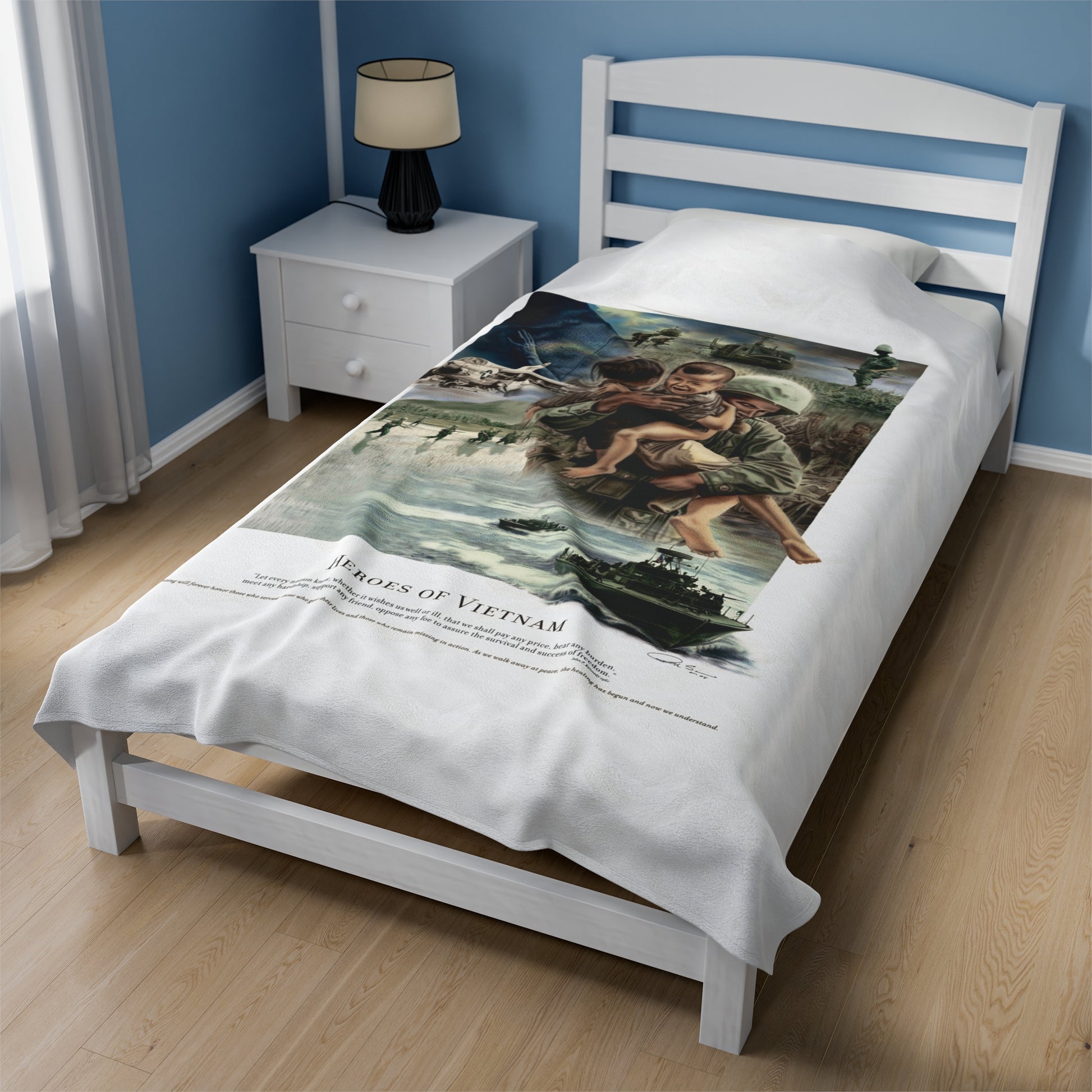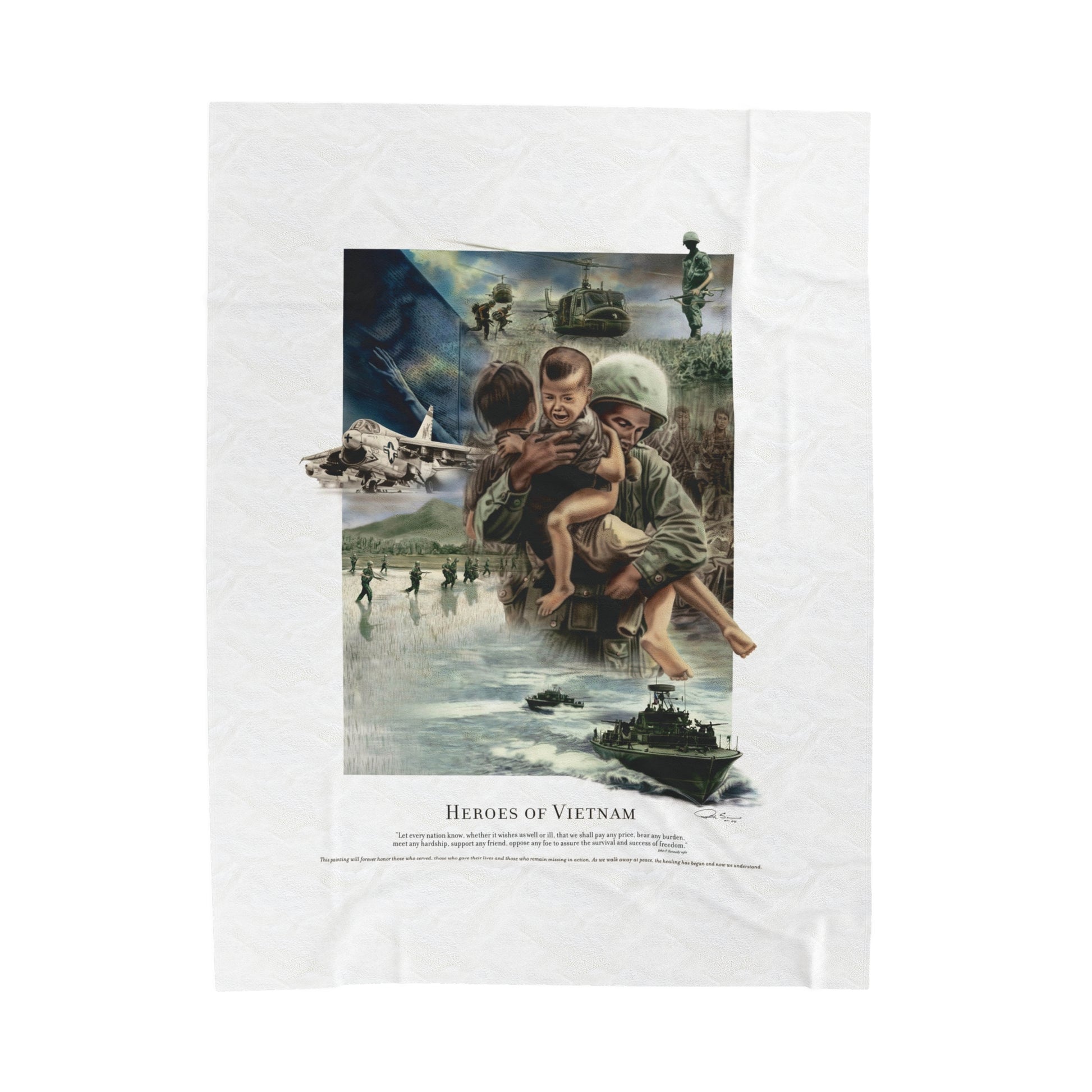 "Heroes of Vietnam" Velveteen Plush Blanket - A Salute to Unyielding Bravery